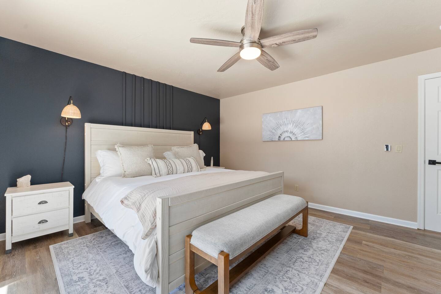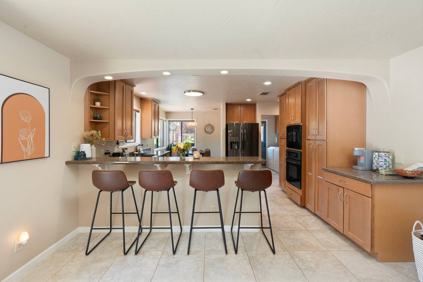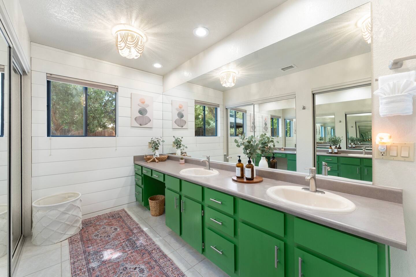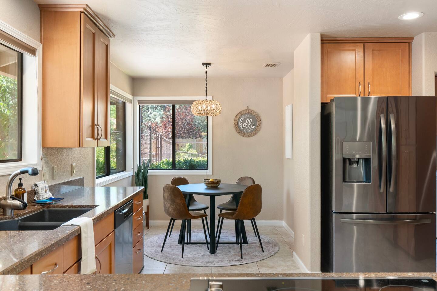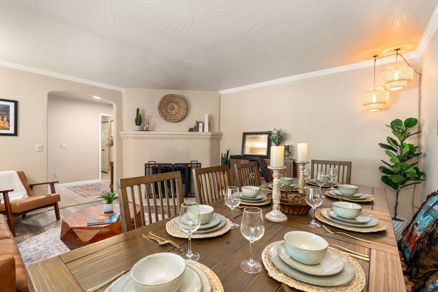 KEY FEATURES 🌄 Red Rock Views: Cathedral Rock and Mammoth Rock visible from the property 🚶 Walk to Trailheads: Easy neighborhood access to Chapel Trail, Mystic Trail, and Little Horse 📍 Prime Location: In Sedona’s coveted Chapel neighborhood, minutes to Uptown, West Sedona, and the Village of Oak Creek 🛁 Hot Tub and Two Fire Pits: Perfect for post-hike soaks and sunset nights 🏡 Spacious 4BR/2.5BA: Nearly 2,000 sq ft, comfortably sleeps up to 9 🛜 High-Speed Fiber Internet (300 Mbps): Great for streaming, video calls, or remote work 👶 Family-friendly: High chair and Pack ’n Play available 🧺 Washer and dryer: Easy resets for longer stays 🐾 Dog-friendly: Up to 2 well-behaved dogs welcome (fee applies) 🌞 Solar Powered: Energy-efficient and eco-minded WHAT GUESTS ARE SAYING “10/10 house. The best house I ever booked from Airbnb.” — Jenny “An exceptional retreat that truly feels like home.” — Freddie “The house and yard were roomy, and the neighborhood peaceful and very scenic.” — Caroline “The location is unbeatable... just minutes from the best trailheads and restaurants!” — Tim "I wish we didn't have to leave." — Brook “We would be thrilled to stay here again on my next trip to Sedona.” — Edith INSIDE Vista Bonita is comfortable, thoughtfully arranged, and designed for unwinding between red rock adventures. You’ll have great views, two living areas, and the kind of flow that works for families, couples, and friend groups alike. KITCHEN & LIVING AREAS The home features two separate living spaces, so your group can gather together or spread out. • Main living room: Large comfy sectional, smart TV, soundbar • Second living area: Ideal for reading, games, or a quiet movie night • Kitchen: Fully stocked cookware and utensils, bar seating, Keurig and drip coffee makers • Breakfast nook: A sunny spot for morning coffee • Dining table: Great for group dinners 4 BEDROOMS Each bedroom has its own vibe and is well equipped. • Primary Suite: King bed, ensuite bathroom, and direct patio access. Spacious and serene, perfect for relaxing after a day of adventure. • Desert Dusk Suite: Queen bed + twin bed. Cozy with sunset tones. Ideal for mix groups or kids. • Modern Ranch Suite: King bed. Modern Western style. • Canyon Bloom Suite: King bed. Floral touches and soft lighting for a dreamy stay. Each bedroom includes luggage racks, closet storage, smart TV, and extra pillows/blankets. 2.5 BATHROOMS Fresh towels, hair dryer, and essential toiletries are provided. • Primary en-suite: Dual sinks, shower, and large closet. • Guest bathroom: Sinks and shower/bath combo. • Half bath: Conveniently located near the kitchen/living area. OUTDOOR EXPERIENCE Set on over ⅓ of an acre, Vista Bonita’s yard is made for gathering, stargazing, and slowing down. • Hot tub for starlit soaks • Two fire pits: Propane fire pit with cushioned seating, plus a wood fire pit (subject to local fire restrictions) • Outdoor dining for al fresco dinners • Water feature for a calm, desert soundtrack • Loungers for sun, shade, and night skies LOCATION Nestled in the quiet Chapel neighborhood, you’re ideally positioned between Uptown, West Sedona, and the Village of Oak Creek. You're close to restaurants and shops and also walking distance to iconic trailheads. • Walkable access to Chapel Trail, Mystic Trail, and Little Horse • <6 min drive to Bell Rock, Cathedral Rock Trailhead • 8 min drive: Tlaquepaque Arts & Shopping Village DOGS WELCOME Up to 2 well-behaved dogs are welcome for an additional fee. Please clean up after them, keep them off furniture, and do not leave them unattended. We provide a fenced area plus food and water bowls. FINAL NOTES • Smart lock for easy self-check-in • Washer/dryer included • Driveway parking for 2 cars, with room for 1 more car on the gravel (3 cars total)