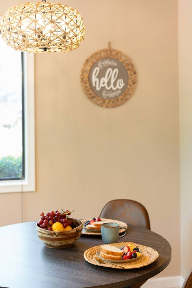 Guests will have private and exclusive access to the entire 2,000 sq ft home, the ⅓-acre yard, and all amenities mentioned. This includes the hot tub, both fire pits, and all indoor and outdoor living spaces. For your convenience, the property features seamless keyless entry. You will be provided with a unique door code prior to your arrival. Private parking is available in the driveway.